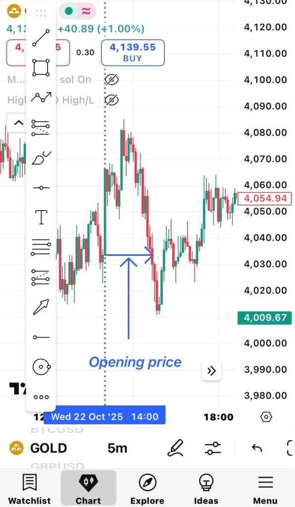 • At 2 p.m. Cameroon time, draw a vertical line on your chart to mark the opening price at this exact time.